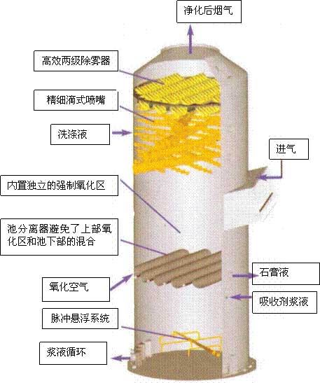 吸收塔由吸收區(qū)、氧化區(qū)和結晶區(qū)組成,結構示意圖如下: