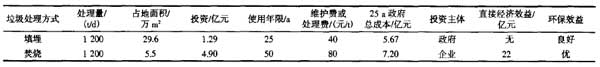 表1 垃圾填埋與垃圾焚燒發(fā)電效益比較![]() |