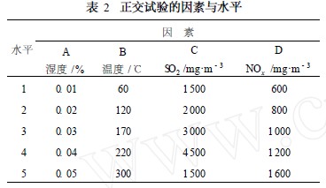 再次,溫度取水平1 時(shí),脫硫、脫硝效果最好。本試驗(yàn)中,催化效率之所以隨著溫度的增高而降低, 有三方面原因: (1) SO2 在水中的溶解性約為40%, 是溶解性較高的氣體,所以反應(yīng)過(guò)程中濕度對(duì)脫硫效率的影響很大,而隨著反應(yīng)體系中溫度的提高,水蒸汽的含量會(huì)逐漸減少,溶解于水中的SO2 比例會(huì)降低,從而降低催化效率。( 2 ) TiO2 催化劑對(duì)SO2 的降解包括物理吸附和化學(xué)吸附。物理吸附過(guò)程是一個(gè)可逆的過(guò)程,同時(shí)也是一個(gè)放熱過(guò)程,因此,溫度越高越不利于物理吸附的進(jìn)行。( 3)在光催化反應(yīng)發(fā)生的過(guò)程中,傳質(zhì)傳熱速率對(duì)光催化反應(yīng)效率影響明顯。吸附開(kāi)始時(shí), TiO2 顆粒表面的擴(kuò)散速率大于吸附速率,有利于光催化反應(yīng)的進(jìn)行,隨著溫度的提高,與氣體接觸的顆粒表面空穴被填滿(mǎn),擴(kuò)散速率減慢,反擴(kuò)散過(guò)程加強(qiáng),從而降低光催化效率。當(dāng)擴(kuò)散與反擴(kuò)散速率平衡時(shí),溫度的升高則對(duì)光催化反應(yīng)的影響不再顯著[ 12 ] 。