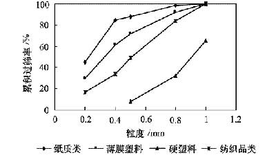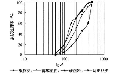 ![]() 圖1 不同廢物破碎后顆粒大小分布特征 |