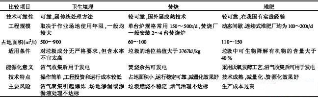 表1三種垃圾處理方法對比表