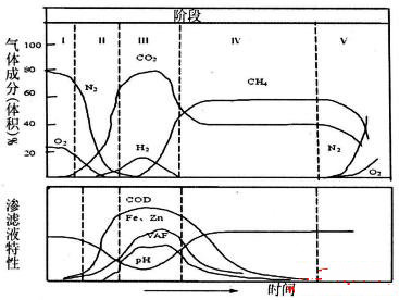 圖1垃圾填埋降解過程5個階段劃分