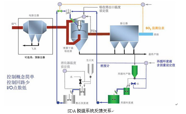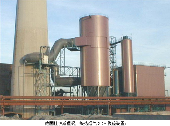丹麥尼魯公司開發(fā)的旋轉(zhuǎn)噴霧干燥(SDA)半干法煙氣脫硫技術(shù),綜合了濕法和半干法的優(yōu)點(diǎn),脫硫效率高,投資低,占地面積小,對煙氣流量、成分、溫度的變化適應(yīng)非?,可靠性高。非常適合鋼廠燒結(jié)煙氣脫硫。