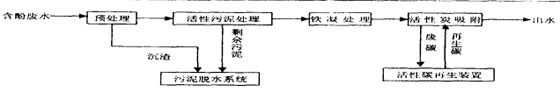 1.該廠含酚廢水主要含COD、酚、NH3-H等污染物。根據(jù)原水水質(zhì)特征,首先進(jìn)行預(yù)處理,使水得以均衡、穩(wěn)定,并符合生化處理要求。預(yù)處理后廢水進(jìn)行活性污泥法生化處理,使有機(jī)污染物得以降解、去除。生化處理后廢水通過活性炭吸附工藝,進(jìn)一步去除廢水中的污染物。主要流程如圖: