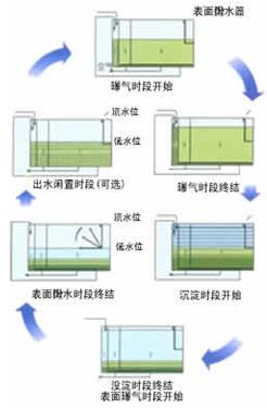 在池子的末端設(shè)有由電機(jī)驅(qū)動(dòng)的可升除的撇水堰,以排出處理出水,撇水裝置及其它操作過程如溶解氧和排泥等均實(shí)行中央自動(dòng)控制。