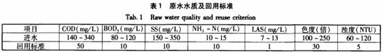 1.1原水水質(zhì)及回用標(biāo)準(zhǔn)