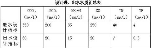 設(shè)計(jì)進(jìn)、出水水質(zhì)匯總表