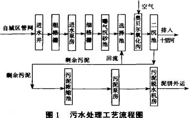大同市是全國重點能源城市,也是全國嚴重缺水城市之一,人均占有水資源僅為286m3,是全國人均水量的9.6%。各類污水排放量在l8×l04m3/d~23×l04m3/d,其中工業(yè)廢水排放量約占60%-71%,生活污水排放量約占29%-40%,由于工業(yè)廢水所占比例較大,污染嚴重,污水中COD、NH3-N、酚、油類、重金屬等有機和有害物質(zhì)嚴重超標,根據(jù)污水水質(zhì)特點和城市缺水現(xiàn)狀,在經(jīng)過多個污水處理方案比較和選擇后,確定選用奧貝爾氧化溝工藝方案作為大同市西郊污水處理廠處理工藝。工藝流程見圖1。