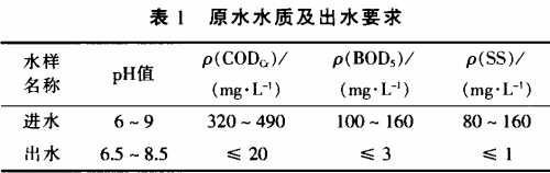 設(shè)計水量為600m3/d,平均處理廢水水量為25m3/h。廢水水質(zhì)及處理后出水水質(zhì)要求見表1。