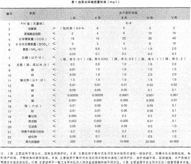 定量達(dá)到國家《地面水環(huán)境質(zhì)量標(biāo)準(zhǔn)》(GB3838~2002)中有關(guān)景觀水體的標(biāo)準(zhǔn)(表1)。