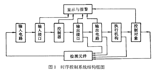 ICEAS工藝過程控制系統(tǒng),實際上就是一個開關(guān)量的邏輯控制問題。它是由曝氣、沉淀、潷水與排泥三個過程組成的時間順序控制系統(tǒng),通常是由輸入、輸出接口與電路及控制器、執(zhí)行機構(gòu)、檢測元件與顯示報警等基本部分組成。如圖1所示。