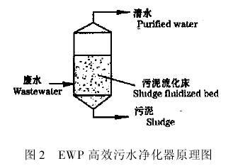 很多廢水(如電池的含鋅廢水)經(jīng)絮凝反應(yīng)后能分離出大量的污泥,這些絮狀污泥有一定的吸附能力。以往的沉淀或氣浮工藝,只把這些固形物進行固液分離,而沒有再充分發(fā)揮這些污泥的吸附過濾作用。EWP高效污水凈化器可以利用這些絮凝反應(yīng)后生成的絮凝沉淀物在凈化器內(nèi)形成一個穩(wěn)定的、可連續(xù)自動更新的吸附過濾流化床,既起混凝沉淀作用,又起吸附過濾作用,比普通的氣浮或沉淀工藝的去除率高10%~20%,是集廢水絮凝反應(yīng)、沉淀、吸附過濾、污泥初步濃縮等功能于一體的設(shè)備。設(shè)備原理圖見下圖,廢水下部進入,經(jīng)混凝反應(yīng)及污泥流化床的吸附和過濾處理,清水從設(shè)備頂部流出,污泥從設(shè)備底部排出。針對重金屬離子容易被吸附的特性,廣州市某公司研制的EWP高效污水凈化器利用Zn在pH=8~9時能生成的Zn(OH)2絮凝沉淀物,在凈化器內(nèi)形成吸附過濾流化床,并添加重金屬離子吸附劑GPC,對汞和其它重金屬污染物進行吸附過濾,達到同時治理幾種重金屬污染物的效果。