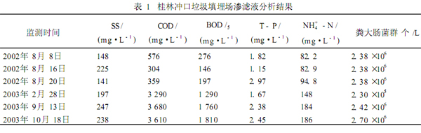 表1 桂林沖口垃圾填埋場滲濾液分析結(jié)果
