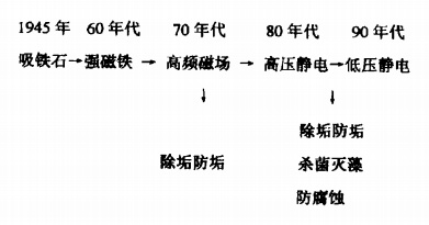 物理技術(shù)的發(fā)展最初是以吸鐵石為基礎(chǔ)的磁場(chǎng)技術(shù),其主要的功能是除垢防垢。磁場(chǎng)技術(shù)的終級(jí)產(chǎn)品是高頻磁場(chǎng)類產(chǎn)品。