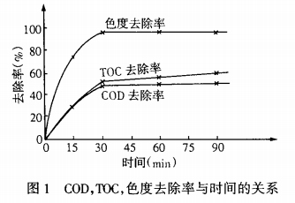 濕式空氣氧化(WAO)工藝最早是由美國(guó)ZIM—PRO公司研制開(kāi)發(fā),故又稱(chēng)為ZIMPRO處理工藝,1958年由Zimmerman首次將其應(yīng)用于污水處理。該工藝是將待處理的物料置于密閉的容器中,在高溫高壓條件下通入空氣或純度較高的氧作為氧化劑,按濕式燃燒原理使污水中有機(jī)物降解。在此之后,日本、歐共體、美國(guó)等陸續(xù)將該技術(shù)運(yùn)用于造紙廢水、化工廢水等高濃度有機(jī)物的廢水處理中。據(jù)報(bào)道,至2000年,世界上采用這種工藝建成的WAO工廠已有200多家,ZIMPRO工藝雖然處理效率高,但由于其反應(yīng)器終端溫度很高,對(duì)反應(yīng)材質(zhì)要求很高,要求耐高溫高壓、耐腐蝕,因此設(shè)備投資高,限制了它的進(jìn)一步推廣。為了克服ZIMPRO工藝的缺點(diǎn),各國(guó)紛紛推出新型的濕式氧化工藝,如t3本石化公司提出的NPC工藝;70年代后發(fā)展了催化濕式氧化工藝(CWA0);1982年美國(guó)MADOR公司開(kāi)發(fā)的超臨界濕式氧化工藝(SWA0)等。國(guó)內(nèi)許多科研人員對(duì)WAO工藝進(jìn)行了深入研究,其中楊奇、錢(qián)易等首次將濕式氧化法應(yīng)用于香料廢水的處理,在中溫160℃、中壓2.8MPA的條件下,香料廢水經(jīng)30分鐘濕式氧化處理,COD,TOC,色度的去除率分別可達(dá)到48%,51%和95%,可生化性增強(qiáng)(圖1)。董岳剛等得出了濕式氧化工藝的動(dòng)力學(xué)參數(shù)。楊奇、趙建夫等在WAO基礎(chǔ)上應(yīng)用催化濕式氧化(CWAO)工藝處理香料廢水,對(duì)催化反應(yīng)機(jī)理及催化劑對(duì)反應(yīng)的影響做了討論,證明了廢水經(jīng)CWAO處理后可生化性明顯地提高,并得到了苯環(huán)取代基的氧化規(guī)律,認(rèn)為很難氧化的苯環(huán)上的取代基分為吸電取代基和供電取代基,供電取代基強(qiáng)化氧化過(guò)程,吸電取代基延緩氧化過(guò)程,這對(duì)香料廢水中芳烴和芳香族化合物的氧化有很好的指導(dǎo)意義。