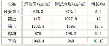 表1大田示范區(qū)畝產(chǎn)量統(tǒng)計(jì)