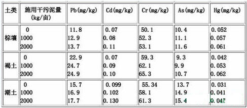 施用污泥7個(gè)月后,5種重金屬僅在土壤表層,未向下遷移,也未發(fā)現(xiàn)對(duì)試驗(yàn)植物有毒害作用。