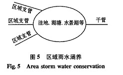 2.3.1路邊滲井涵養(yǎng)適于設(shè)有綠化帶的城市道路雨水涵養(yǎng)和排水。雨水排水干管鋪設(shè)于綠化帶下,按滲井的要求建設(shè)檢查井,除發(fā)揮檢查井的功2.4區(qū)域連接各單元雨水進(jìn)入管道輸送后應(yīng)盡量利用自然條件(如洼地、湖塘、水景湖等),進(jìn)行進(jìn)一步涵養(yǎng)和調(diào)節(jié),以最大限度地涵養(yǎng)雨水,削減峰值流量,減少管道造價(jià)。其基本做法如圖5所示。