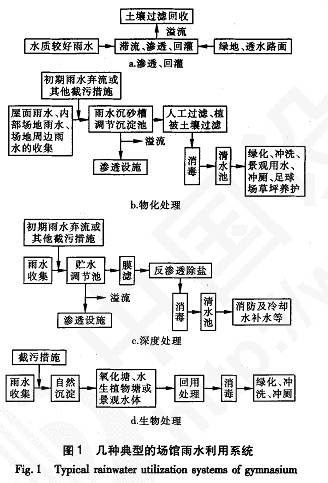 (4)體育場館的雨水可用于沖廁所,綠化,沖洗地面,景觀用水的,科學(xué)合理的確定雨水的用途及相應(yīng)的水質(zhì)要求是場館雨水利用系統(tǒng)優(yōu)化設(shè)計(jì)的前提。