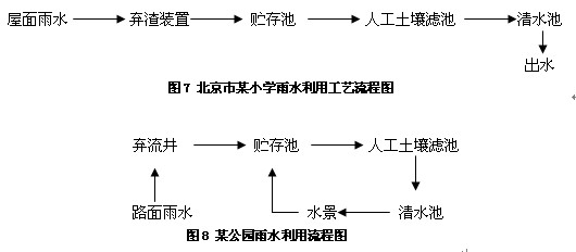 在我國(guó)對(duì)于土壤過(guò)濾系統(tǒng)也有一定的應(yīng)用。北京市某小學(xué)以及某公園就利用土壤過(guò)濾處理雨水。其流程圖見(jiàn)圖7和圖8: