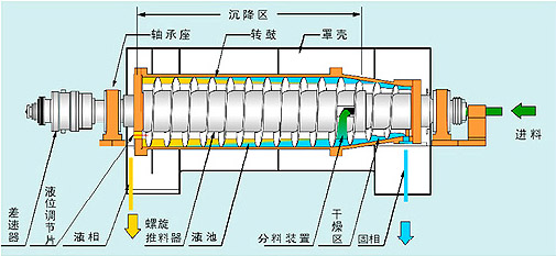 ![]() 離心式污泥脫水及結(jié)構(gòu)示意圖 |