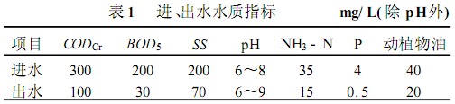 本工程排水量為 250 m3/ d ,污水處理站 24 h 運(yùn)行。進(jìn)、出水水質(zhì)指標(biāo)根據(jù)建設(shè)單位提供的環(huán)境影響評(píng)價(jià)報(bào)告表及《污水綜合排放標(biāo)準(zhǔn)》 G B8978 - 1996一級(jí)標(biāo)準(zhǔn)確定。