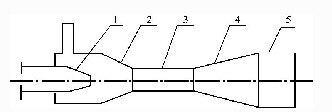 1. 噴嘴; 2. 吸氣室; 3. 喉管; 4. 擴(kuò)散管; 5. 尾管