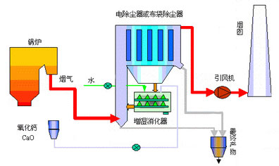 利用循環(huán)灰攜帶水分,在粉塵顆粒的表面形成水膜。粉塵顆粒表面的薄層水膜在一瞬間蒸發(fā)在煙氣流中,在極短的時間內(nèi)形成溫度和濕度適合的理想反應(yīng)環(huán)境。同時也克服了傳統(tǒng)半干法脫硫反應(yīng)器中可能出現(xiàn)的粘壁問題;