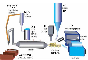 該工藝混合了脫水污泥和生石灰以及酸,是一個堿性污泥穩(wěn)定系統(tǒng)技術(shù)。整套系統(tǒng)包括污泥脫水設(shè)備,石灰存儲,混合攪拌系統(tǒng),酸存儲,反應(yīng)器,水洗滌器和臭氣回收系統(tǒng)。BIOSET過程中,處理的污泥連續(xù)被雙缸柱塞泵送入栓賽流反應(yīng)器,在反應(yīng)器中用石灰和固體酸來同脫水污泥混合攪拌,污泥和化學(xué)物料在全封閉的壓力作用下發(fā)生反應(yīng),最終產(chǎn)出A/EQ級污泥產(chǎn)品。反應(yīng)器的溫度應(yīng)控制在70℃,生物污泥通過提升和維持高溫達(dá)到巴斯德殺菌要求,即消滅有害病菌。這種專利過程把生石灰轉(zhuǎn)變?yōu)榈氖焓遥羁焖傩纬勺钣袃r值的鈣結(jié)構(gòu)。而產(chǎn)生的臭氣則被小型洗滌系統(tǒng)搜集且無泄漏。