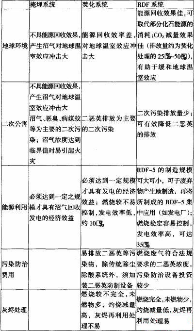 表 掩埋系統(tǒng)、焚化系統(tǒng)與RDF系統(tǒng)比較