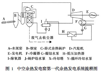 (1)第一代技術——日本于上世紀三十年代在中國的華北、東北地區(qū)及上世紀七、八十年代我國自行建設的中空余熱發(fā)電窯余熱發(fā)電系統(tǒng),如圖1所示。