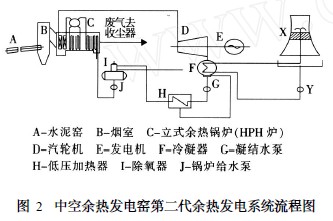 (2)第二代技術——國內開發(fā)、研制的中空余熱發(fā)電窯余熱發(fā)電系統(tǒng),如圖2所示。