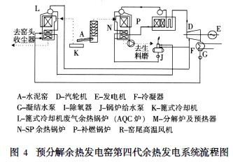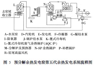 對(duì)于不帶補(bǔ)燃鍋爐的余熱發(fā)電系統(tǒng),主要是利用預(yù)分解窯系統(tǒng)中窯尾預(yù)熱器的廢氣余熱及窯頭熟料冷卻機(jī)排掉的廢氣余熱。廢氣溫度不同,余熱發(fā)電能力也不同,當(dāng)窯尾預(yù)熱器排出的廢氣溫度為300~400 ℃、窯頭熟料冷卻機(jī)排掉的廢氣溫度為180 ~250 ℃,在不影響水泥生產(chǎn)的前提下,每噸水泥熟料的余熱發(fā)電能力約為22 ~35KW。
