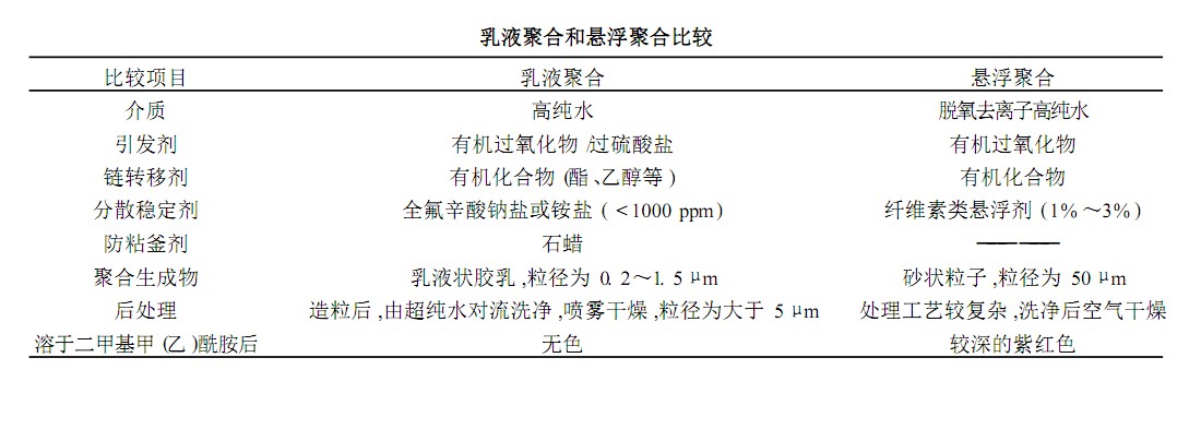 由于PVDF聚合對操作條件非常敏感 ,且西方國家采取非常嚴密的技術(shù)封鎖 ,阿托菲納公司采用乳液聚合 ,蘇威公司的PVDF技術(shù)來自于杜邦 ,但杜邦不生產(chǎn)PVDF,其他一些公司采用兩種聚合方式都有報道。俄羅斯塑聚體股份公司采用懸浮聚合。