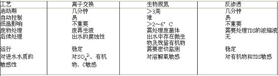 離子交換、生物脫氮和反滲透法去除硝酸鹽的比較見表1所示。