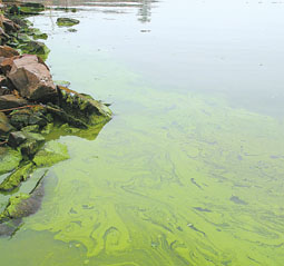 水體富營養(yǎng)化,常導(dǎo)致水生生態(tài)系統(tǒng)紊亂,水生生物種類減少,多樣性受到破壞。昆明滇池水質(zhì)在20世紀(jì)50年代處于貧營養(yǎng)狀態(tài),到80年代則處于富營養(yǎng)化狀態(tài),大型水生植物種數(shù)由50年代的44種降至20種,浮游植物屬數(shù)由87屬降至45屬,土著魚種數(shù)由15種降至4種;武漢漢江在1992年發(fā)生水華時(shí),藻類種群的多樣性指數(shù)也呈下降趨勢(shì)。普遍的重富營養(yǎng)造成多種用水功能的嚴(yán)重?fù)p害,甚至完全喪失。武漢漢江下游因出現(xiàn)水華現(xiàn)象而導(dǎo)致漢川自來水廠被迫關(guān)閉,宗關(guān)自來水廠的凈化工序困難,反沖增加,制水成本增加。此外,由于藻類帶有明顯的魚腥味,從而影響飲用水質(zhì)。而藻類產(chǎn)生的毒素則會(huì)危害人類和動(dòng)物的健康。水體富營養(yǎng)化的危害主要表現(xiàn)在三個(gè)方面: