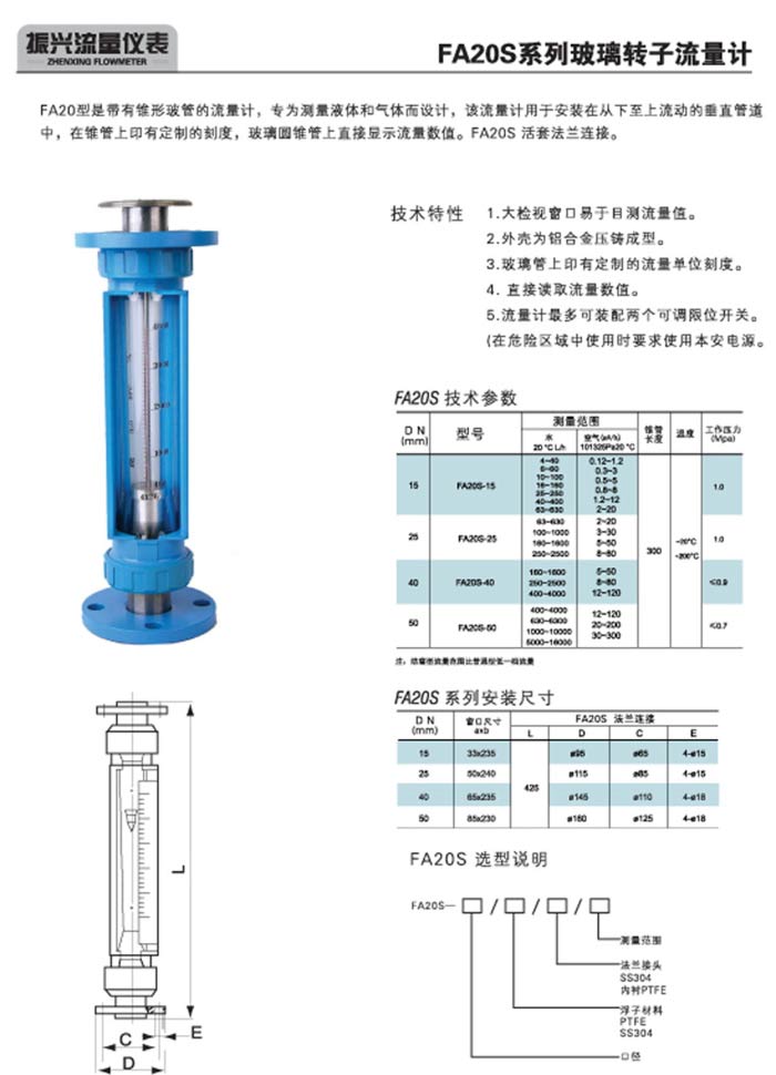 FA20S玻璃轉(zhuǎn)子流量計(jì)