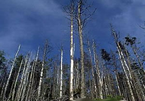 酸雨給地球生態(tài)環(huán)境和人類社會經(jīng)濟都帶來嚴(yán)重的影響和破壞。研究表明,酸雨對土壤、水體、森林、建筑、名勝古跡等人文景觀均帶來嚴(yán)重危害,不僅造成重大經(jīng)濟損失,更危及人類生存和發(fā)展。如在瑞典的9萬多個湖泊中,已有2萬多個遭到酸雨危害,4千多個成為無魚湖。美國和加拿大許多湖泊成為死水,魚類、浮游生物、甚至水草和藻類均一掃而光。北美酸雨區(qū)已發(fā)現(xiàn)大片森林死于酸雨。