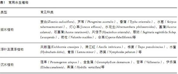 通過(guò)對(duì)相關(guān)文獻(xiàn)的搜集整理得知,目前所涉及的水生植物主要有以下幾類(表1)。