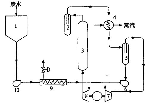 1-貯存罐;2-分離器;3-健化反應(yīng)器;4-再沸器;5-分離器;6- 循環(huán)泵;7- 透平機(jī);8-空壓機(jī);9-熱交換器;1O-高壓泵